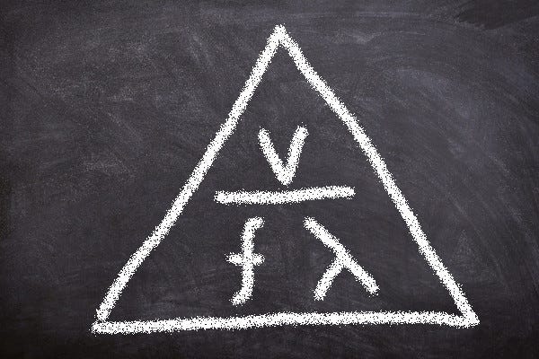 In Part 1 of this series I introduced the concept of formula triangles. These illustrate the relationships between three quantities used in science, technology, engineering and other fields, specifically how an unknown value can be calculated from two known values. The Python code in Part 1 included functions to print formula triangles to the terminal and calculate unknown values, as well as a single example relating the distance, speed and time of a journey. Here in Part 2 I'll show a few more examples.
